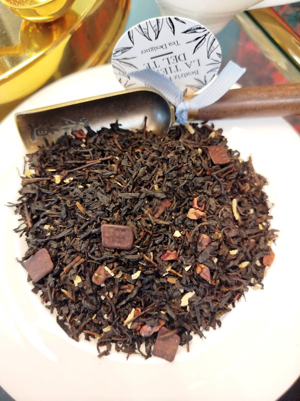 Un elegante té negro inspirado en la clásica Sachertorte vienesa. Combina la intensidad del té negro con notas profundas de cacao, un sutil toque afrutado que evoca la mermelada y un final dulce y aterciopelado. Perfecto para quienes buscan una infusión sofisticada con carácter de postre. Con teína.