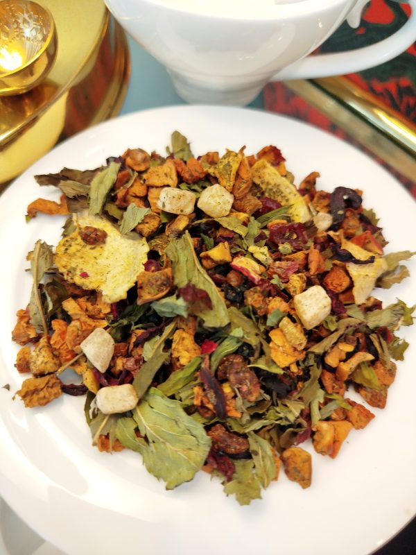 Tisana creada sobre una mezcla de hierbas y frutas muy refrescante y digestiva debido a sus principales ingredientes: manzana verde, melón, hibisco, bayas de saúco, menta, rosa mosqueta y sandía. Exquisita para tomar fría y reconfortante para tomar caliente. Sin teína.