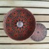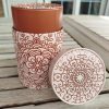 Lata de aluminio con diseño en relieve de mandalas en tonos cobre y negro, ideal para conservar tu té fresco y protegido, aportando un toque de estilo y sofisticación a tu rincón de infusiones. Dispone de tapa interior para preservar aún más de la temida humedad.