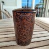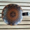Elegante taza con filtro de acero inoxidable y tapa a juego. Su diseño en tonos cobre y negro con delicados motivos mandala, la convierte en una pieza única y decorativa. Incluye: