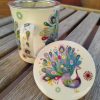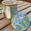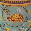 Taza de porcelana pintada, con filtro de acero inoxidable y decorada con un encantador diseño floral en tonos azules y dorados, siendo protagonista, una preciosa tortuga de mar.. Incluye tapa a juego para conservar el calor, perfecta para preparar tés e infusiones de hojas sueltas. Disfrutarás de tus tés favoritos con elegancia y mucho estilo.