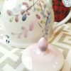 Preciosa tetera de cerámica pintada con diseño floral a acuarela. El estilo natural y relajante de esta pieza decorada con ramas y hojas en tonos suaves, evoca los Cuentos de Hadas. La tapa, en un sutil tono rosado, aporta un contraste elegante que resalta aún más su acabado, convirtiéndose en una pieza perfecta tanto para uso diario como para regalar.