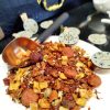 Propiedades: Energizante natural ayudando a la concentración. Antioxidante y rico en vitamina C, favoreciendo la digestión gracias a la canela. La mezcla de teína se equilibra con los pétalos de rosa que favorecen la relajación y la calma.