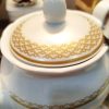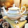 Tetera de estilo victoriano de color blanco nacarado, perfecta para quienes buscan elevar el ritual del té combinando estilo, calidad y sofisticación, convirtiéndose en un regalo excepcional o en el complemento ideal para una mesa refinada.